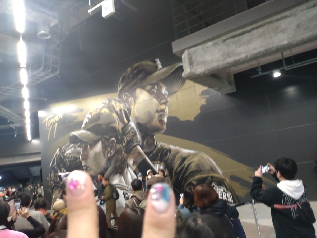 ↑のボードを持って現地してるワタシが中継に映って、打席に立つ翔さんと重ねて貰ったこともあったはず。(結果は凡退でしたけどね。笑)